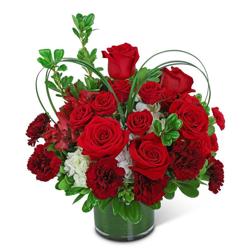 All My Heart is a very romantic gift! This fresh flower design is created with roses, alstroemeria, and carnations in a leaf-lined vase. Whether you're looking for a gift for your Valentine or just to show someone how much you care, this design made up of red and white blossoms with a natural foliage heart accent makes it an exceptional gift for Valentine's Day. Whether you're looking for a gift for your Valentine or just to show someone how much you care, this romantic bouquet will surely convey your feelings.