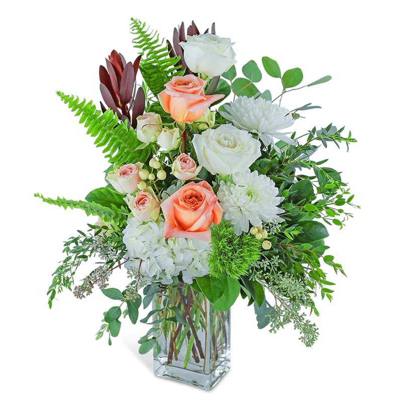 What could be more beautiful than sending the colors of the Almafi Coast? Our Almafi Coast design features Roses, Hydrangea, Cremon, and other premium foliage artfully designed in a clear glass vase. This gorgeous bouquet would make the perfect Mother's Day gift or Anniversary gift. A professionally designed flower bouquet will be sure to impress or add a beautiful elegance to her home or office space. Flowers offer a beautiful and aromatic way to show someone you care.