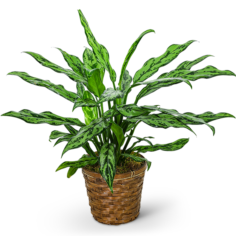 Our Chinese Evergreen Plant in a Basket is a beautiful plant that features lush green leaves with unique patterns, all arranged in a stylish woven basket. The Chinese Evergreen plant is known for its hardiness and ability to thrive in low-light conditions, making it the perfect choice for any home or office. With proper care, this plant can last for years to come. Whether you're celebrating a birthday or anniversary or just want to send a thoughtful gift, our Chinese Evergreen Plant in a Basket is the perfect choice.