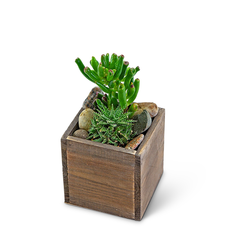Succulents are the ideal gift for someone who hasn't yet acquired a green thumb. A succulent is a low maintenance and hardy plant, just add water when the soil is dry to the touch. Desert Sky, with succulent plants in a wooden box, would be a nice addition to any office, dorm room, or living space.