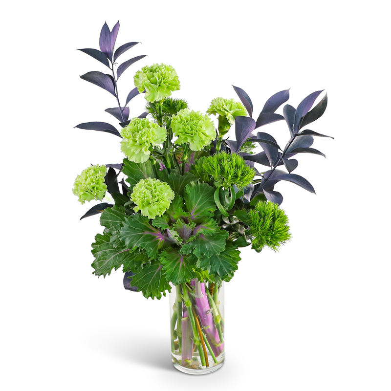 Our Elphaba Embrace design captivates with its bold and enchanting presence, featuring Kale, Green Trick Dianthus, Carnations, and black foliage. This striking arrangement is the perfect gift for the Wicked lover in your life, exuding a mysterious allure and a touch of drama. Embrace the magic by arranging a flower delivery, and let us bring a touch of the extraordinary straight to your doorstep. As a trusted local florist, we take pride in every order, offering hand-crafted flower designs delivered directly to the recipient. Our flower shop is committed to providing the highest quality, freshest flowers, and ensuring timely delivery for every arrangement.