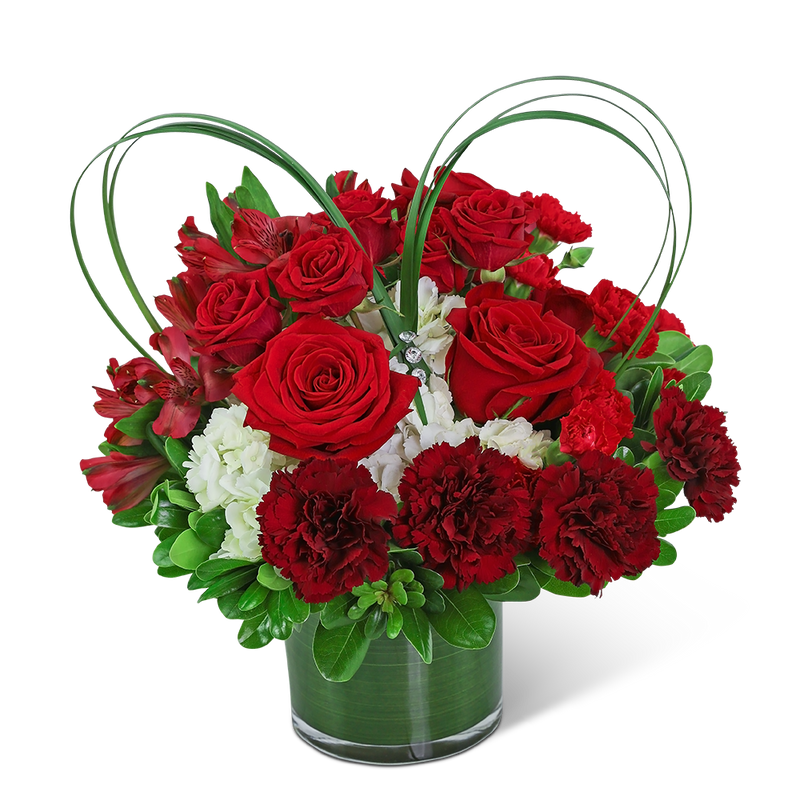Heart to Heart is a very romantic gift! This fresh flower design is created with roses, alstroemeria, and carnations in a leaf-lined vase. Whether you're looking for a gift for your Valentine or just to show someone how much you care, this design made up of red and white blossoms with a natural foliage heart accent makes it an exceptional gift for Valentine's Day. Whether you're looking for a gift for your Valentine or just to show someone how much you care, this romantic bouquet will surely convey your feelings.