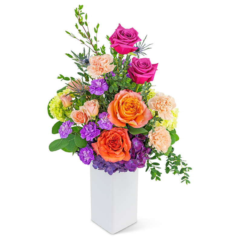 Jubilee Garden is the perfect birthday or romantic gift. Let us help make their day with this special flower delivery! If you want us to deliver roses, but want something extraordinary, we suggest Jubilee Garden. It features beautiful roses, hydrangea, carnations, and other premium foliage that will add a pop of color to any space.