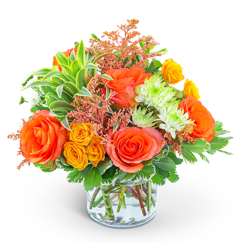 The vibrant tropical shades in this bouquet will brighten anyone's day! Key West Sunshine features Roses, Mums, Solidago, and is accented with premium foliage. This arrangement will be a perfect gift for an anniversary, birthday, or any occasion. The Key West Sunshine Bouquet of flowers offers the perfect mix of color, texture, and aroma to make any celebration truly memorable!