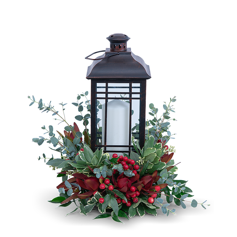 A lantern is a great keepsake for the home but is also a comforting symbol of lighting the path ahead. Light Through the Fog is a customer and shop favorite, as a sympathy gift, or just because. A small metal lantern surrounded by premium foliage creates a peaceful atmosphere and serves as a beautiful keepsake for years to come. This design will look perfect in the middle of a dining or coffee table and will be a treasure to the recipient.