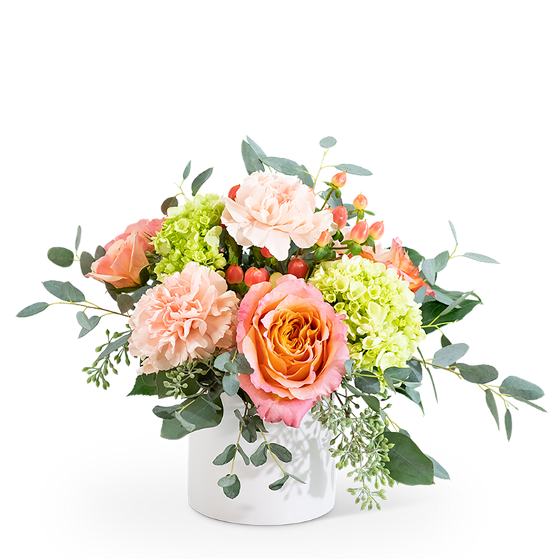 Looking for the perfect birthday or romantic gift? Make someone's day with the creatively designed Malibu Crush arrangement. Its highlighted flowers include Free Spirit Roses, peach carnation, hypericum berries, peach spray roses, mini hydrangea, and different varieties of eucalyptus. It's a great gift for a friend or your favorite crush.