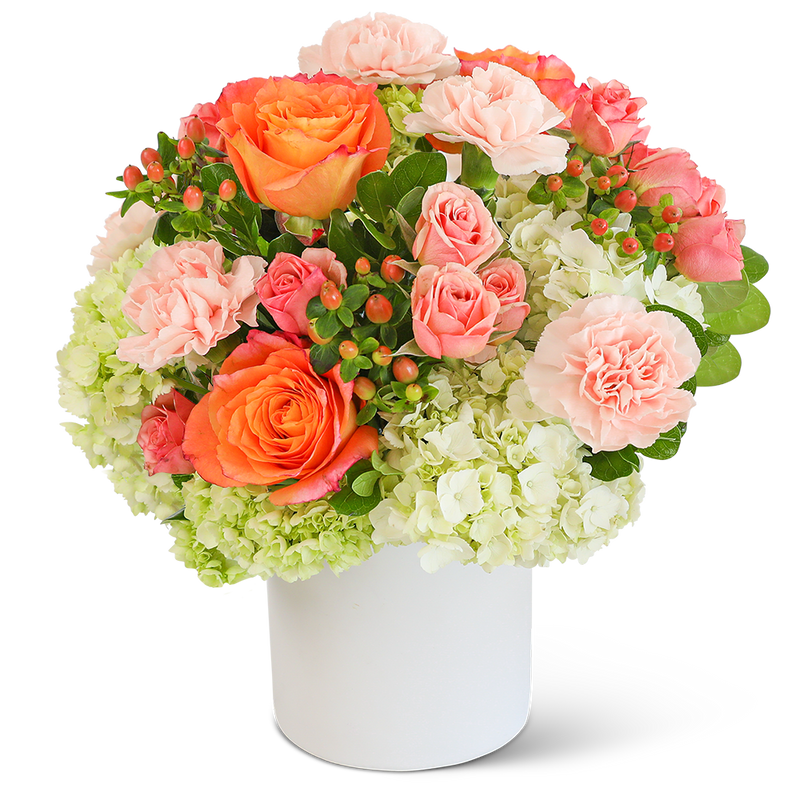 Send a message of love and hope with this beautiful flower arrangement. Brighten someone's day with the creatively designed Malibu Morning flower arrangement. Its highlighted flowers include Free Spirit Roses, carnations, hydrangea, spray roses, and assorted foliage. A stunning arrangement of fresh flowers is designed to brighten the room and lift the spirit, making someone's birthday or get-well gift extra special.