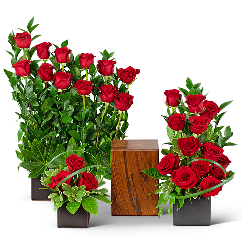 Roses are a beautiful choice for a Funeral or Celebration of Life Service. Our Perfect Love Surround is an elegant design that features beautiful red roses and a variety of premium foliage, to be displayed around a photo or urn. Red roses symbolize respect, love, and courage in a sympathy design. Funeral flowers are a meaningful way to celebrate the life of the deceased, while providing comfort to the friends and family left behind.