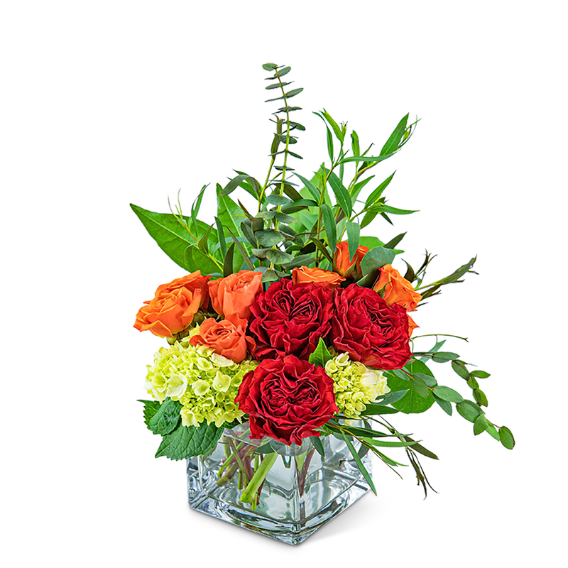 The warm glow of sunset is captured in this stunning arrangement. Positano Sunset features roses, hydrangea, eucalyptus and parvifolia. Whether celebrating a birthday, new baby, or retirement, this bouquet will add just the right touch of warmth to your celebration.
