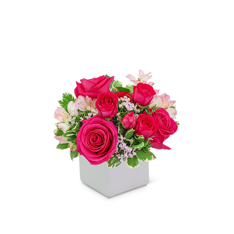 If you're looking for an easy way to brighten someone's day, this is it! Pretty Posh has a combination of bright pink roses, alstroemeria, and beautiful fresh foliage in a white vase. This chic bouquet will light up any room or space and is the perfect gift for any occasion.