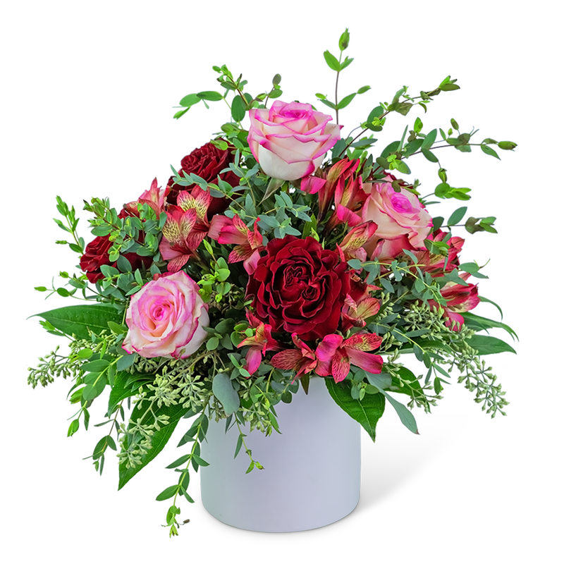 The warm tones of this arrangement are as rich as its namesake. Soft as Velvet contains roses and alstroemeria, surrounded by a variety of premium foliage. It will look perfect on any entry or coffee table.