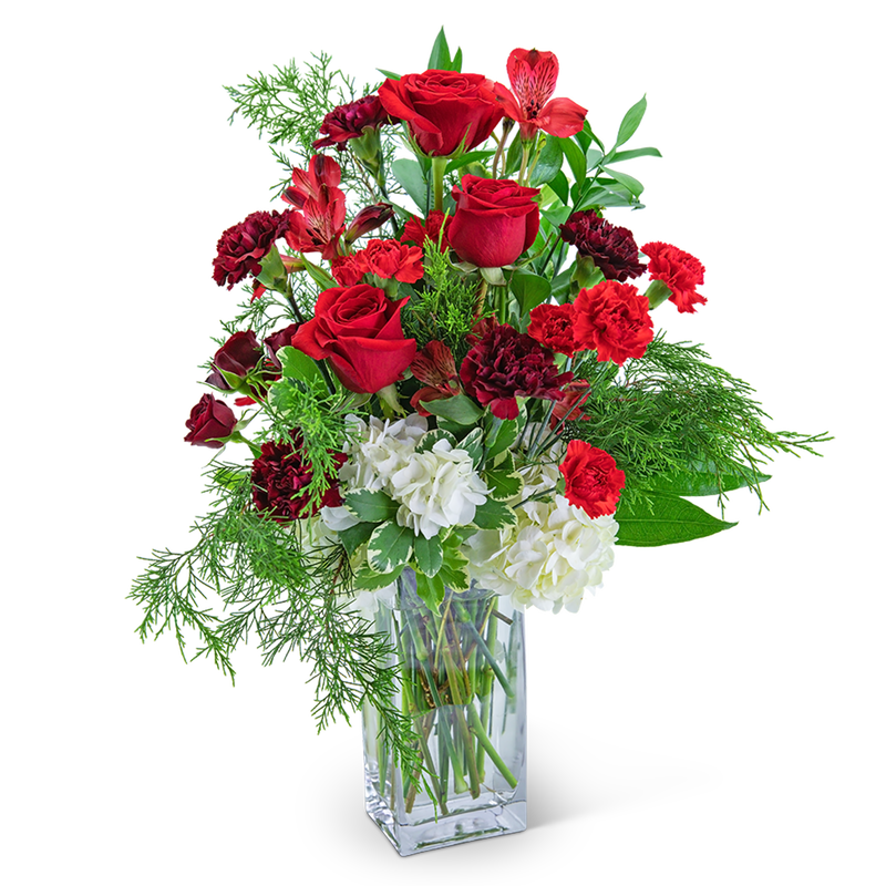 Put a little spice in someone's life with this stunning bouquet! Spiced Cider features roses, hydrangeas, alstroemeria, and carnations accented with a variety of foliage in a tall vase. This stylish arrangement would make quite a statement on any entryway or dining room table.