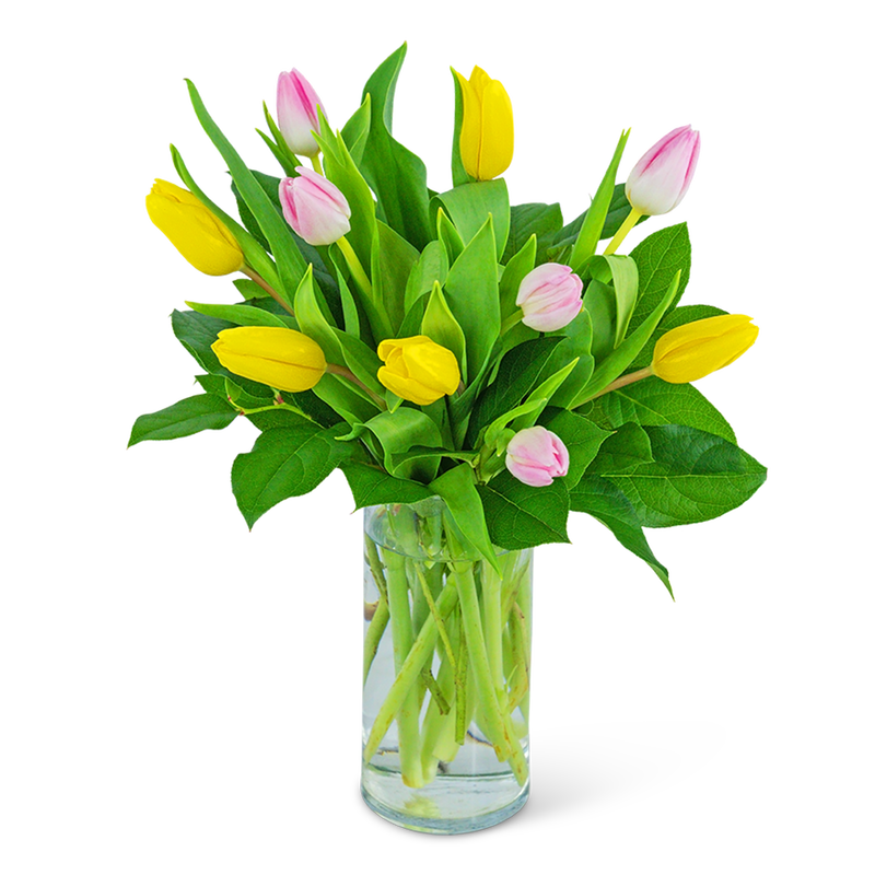 It's always a good idea to send a vase of tulips! Strawberry Lemonade Tulips include spring-inspired pink and yellow tulips with premium foliage in a clear vase. Send spring tulips to someone you love as a housewarming gift or the perfect get-well gift! Our shop specializes in local flower delivery, so let us deliver these beautiful flowers to your loved one today!