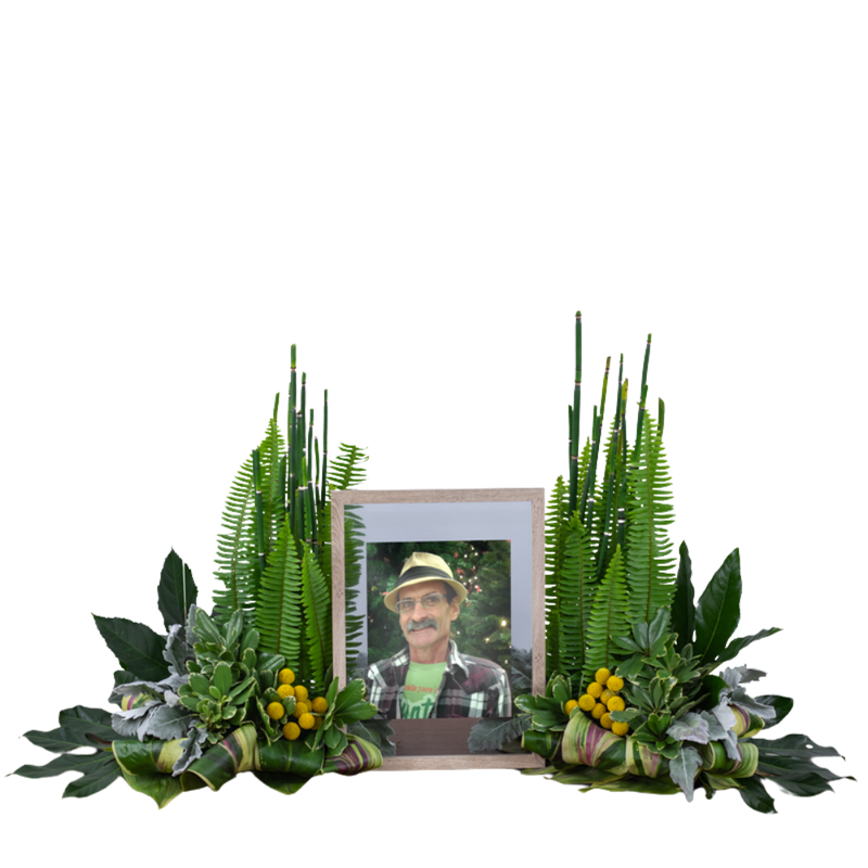 Our Surrounded in Nature Memorial Design is the perfect tribute for a loved one who loved all things nature. This natural and organic surround features a beautiful variety of textures of organic premium foliage with a touch of gold crespedia. Flowers and plants are a beautiful and meaningful way to offer a tribute for a very special loved one and to celebrate their life.
