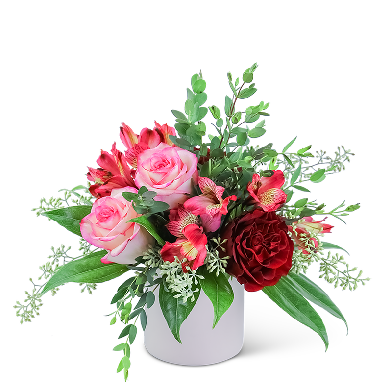 The warm tones of this arrangement are as rich as its namesake. Sweet Red Velvet contains roses and alstroemeria, surrounded by a variety of premium foliage. This sweet bouquet is the perfect thank you or just because gift!