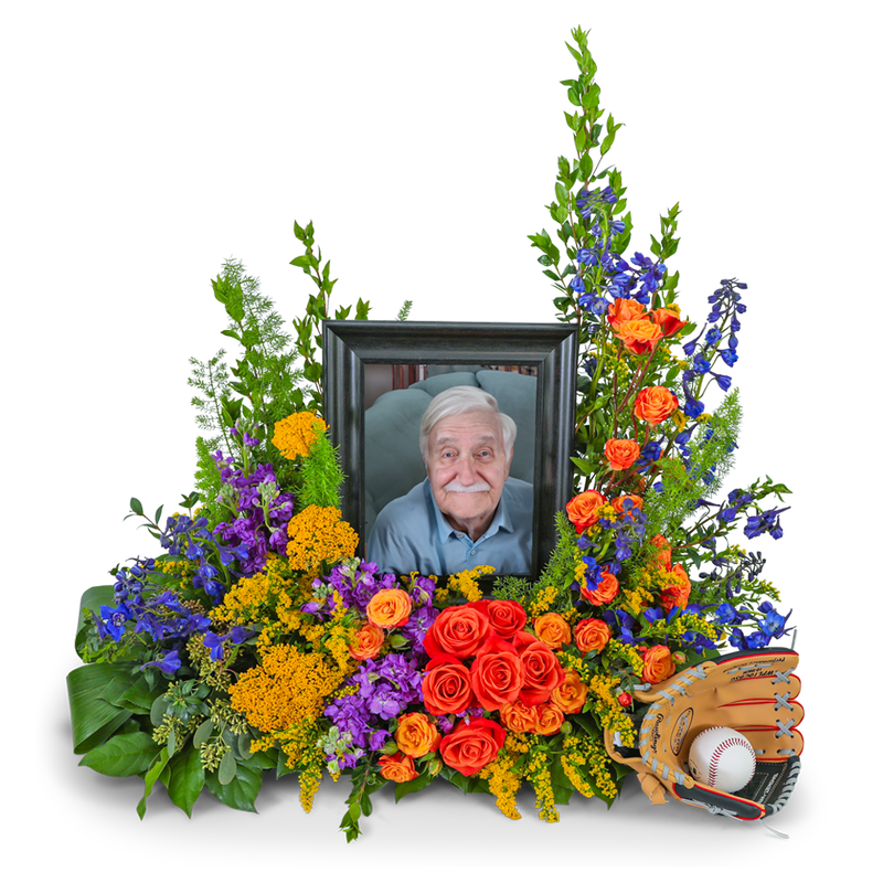 Our Tears in Heaven Personalized Memorial Tribute is a stunning floral design filled with Roses, Delphinium, Stock, Yarrow, Solidago, and other premium foliage. Vibrant colors symbolize warmth and a personalized touch can be added, honoring your loved one's unique passions. This heartfelt tribute captures their joyful spirit and the lasting impact they have made to those around them.