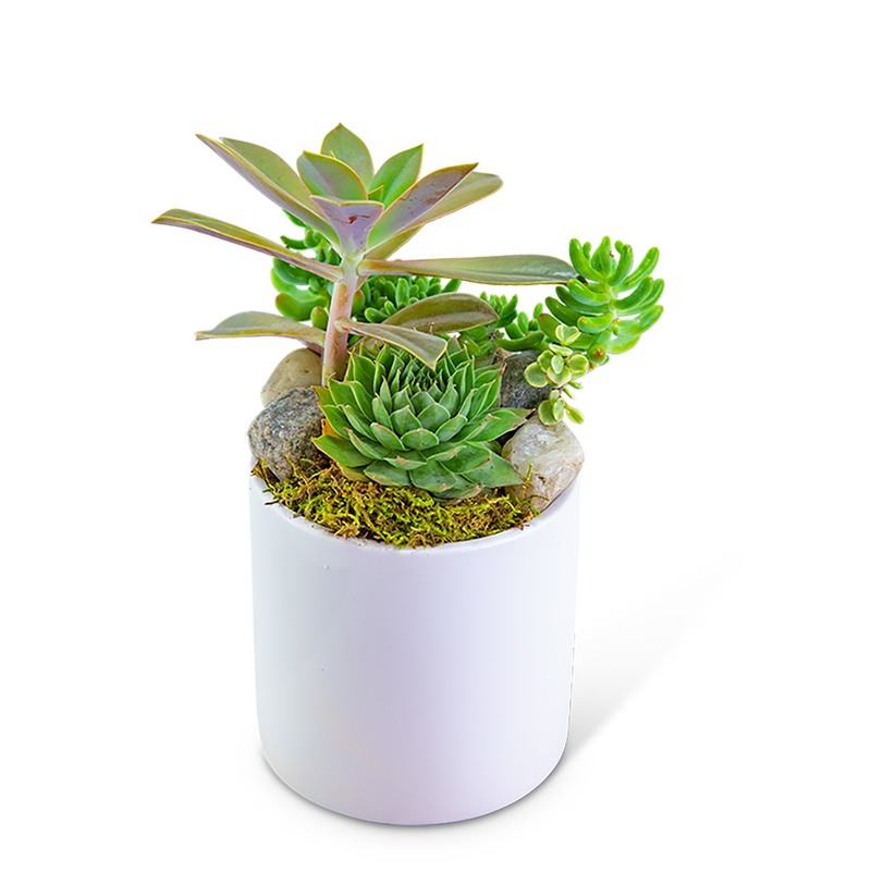 Succulents are the ideal gift for someone who hasn't yet acquired a green thumb. A succulent is a low maintenance and hardy plant, just add water when the soil is dry to the touch. Let us create an artful combination of succulents in a succulent garden that will last for many months or even years of enjoyment. Tempe Canyon, with succulent plants in a sleek white container, would be a nice addition to any office, dorm room, or living space.