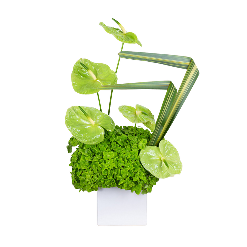 Our Tropical Haven design is the perfect selection for a loved one who loves all things tropical and warm. This natural and organic design features green anthurium, a variety of premium foliage, and flax to create dramatic lines. Flowers and plants are a beautiful and meaningful way to offer a tribute or show someone you care.