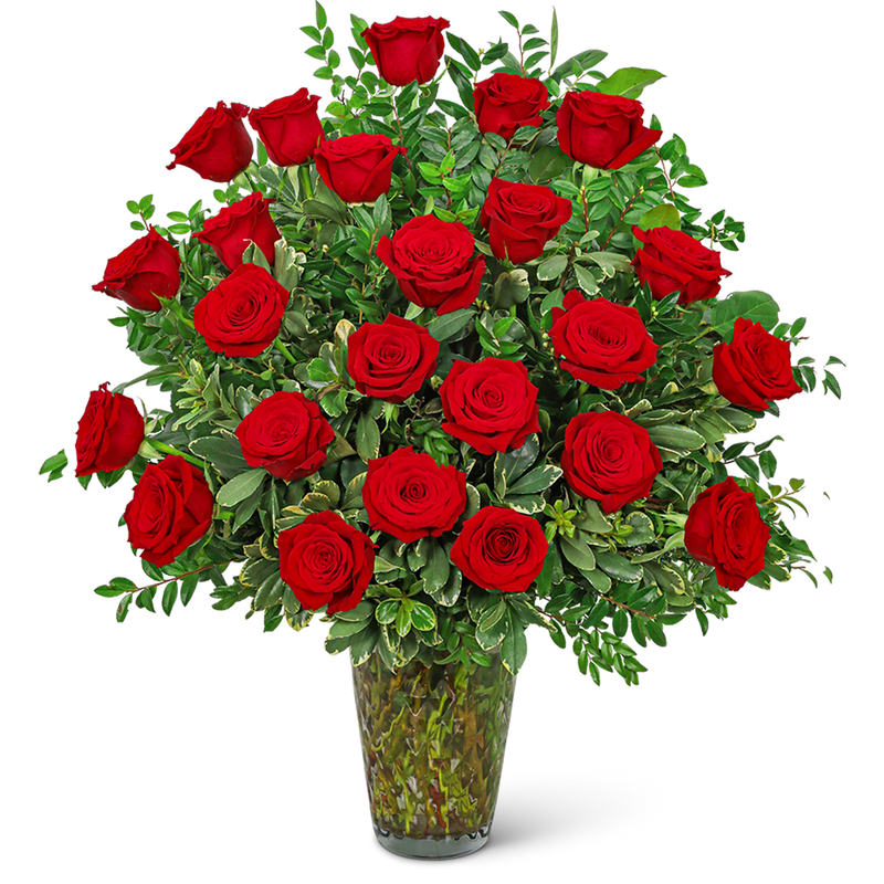 Our Two Dozen Elegant Red Roses is a stunning flower arrangement that exudes timeless elegance and sophistication. This luxurious arrangement features 24 of the finest long-stemmed red roses, expertly arranged in a classic vase to showcase their natural beauty and grace. The rich red hue of the roses symbolizes deep love, passion, and admiration, making it the perfect gift for a special someone on any occasion. Whether you're looking to make a grand romantic gesture or simply want to express your love and appreciation, Two Dozen Elegant Red Roses is the perfect choice. Order yours today and make a statement that will be remembered for a lifetime.