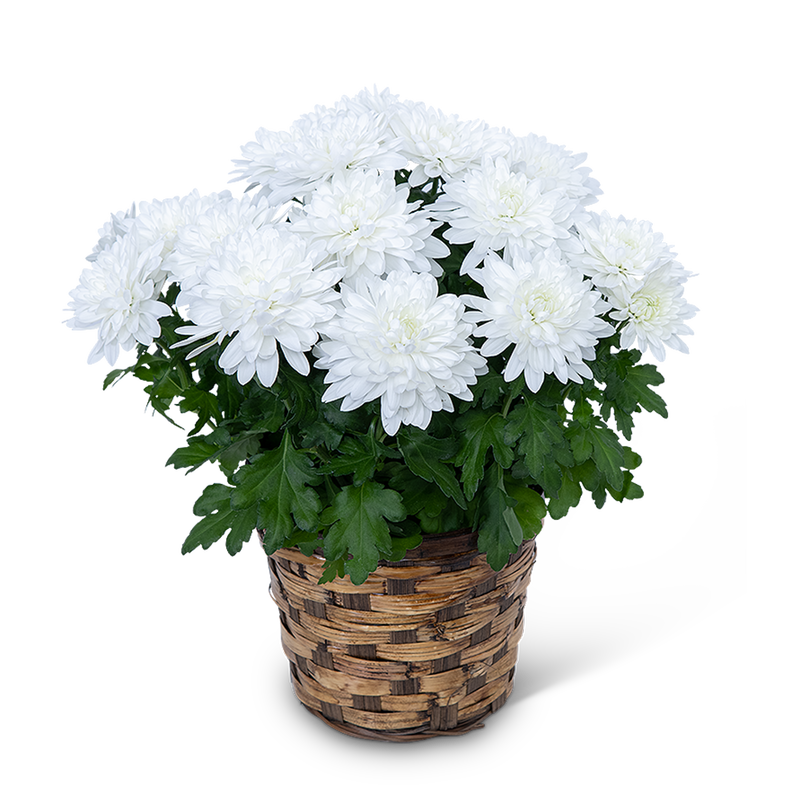 This White Chrysanthemum Plant is a symbol of loyalty and devoted love. It will bloom nicely in its container for several weeks, and like the gift that keeps on giving, the recipient can plant it out in their garden to bloom again and again! A Mum Plant is a great gift for housewarming, get well, or any occasion.