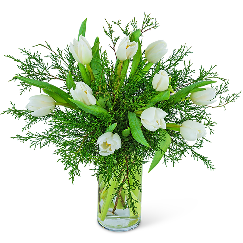 It's always a good idea to send a vase of tulips! Our Winter White Tulips design will add a modern clean look to any home or office space. Send beautiful tulips to someone you love as a housewarming gift or the perfect get-well gift! Our shop specializes in local flower delivery, so let us deliver these beautiful flowers to your loved one today!